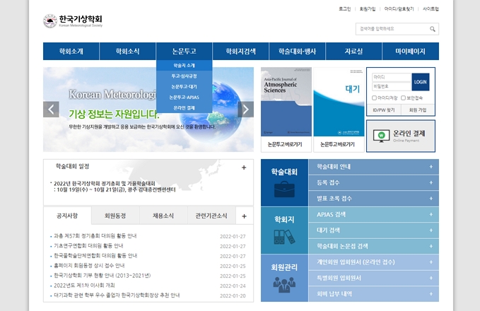 투고자, 심사위원, 편집위원, 학회관리자를 위한 관리 기능들이 있습니다.